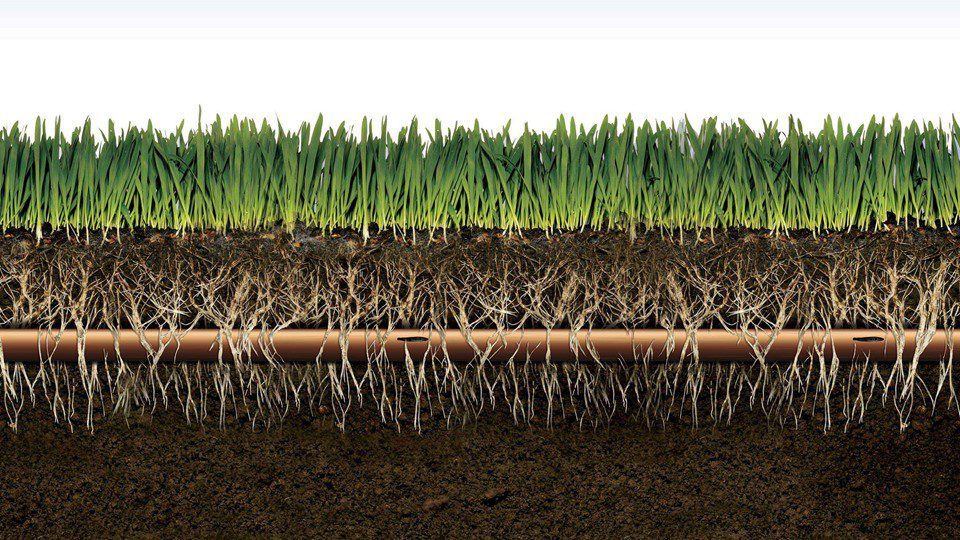 Pas fillimit të depërtimit të rrënjëve në thellësi, rekomandohet të reduktohet sasia e ujitjes për të nxit rrënjosjen në shtresa më të thella. Nëse sistemi i ujitjes nëntokesore vendoset në një sipërfaqe me renije, duhet të kemi parasysh që linjat e gypave të ujitjes pik-pik të ndahen në disa zona lartësie. Ndryshe, pjesët më të ulëta të lëndinës mund të marrin më shumë ujë, pasi uji nga pjesët më të larta të instalacionit nën sipërfaqes do të kullohen gjithmonë drejt pjesëve më të ulëta të lëndinës.”